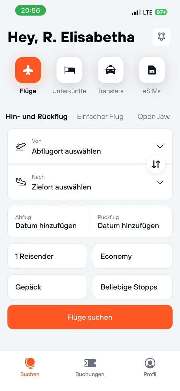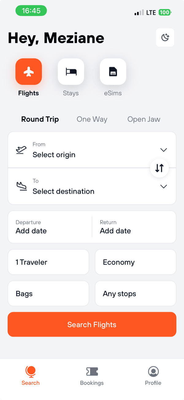 Buche Fluge, Aufenthalte, Transfers und eSIMs in einer Premium-App, die jede Reise einfacher macht.