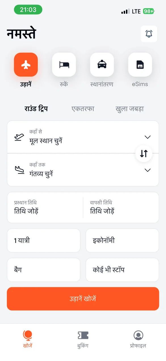 एक साफ फ्लो में फ्लाइट खोजें, तुलना करें और बुक करें।